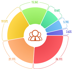 市場開発職、生産運用職、総合機能職、熟練オペレーションおよび作業サービス職に従事する同社の人員は、それぞれ総従業員数の約 53%、624%、206%、117%を占めています