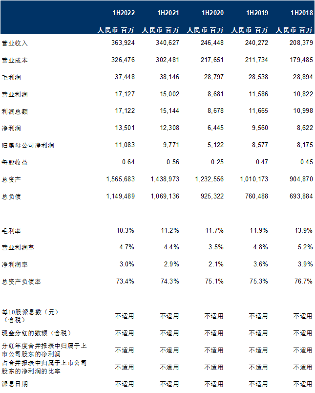 2022 年の中間財務ハイライト